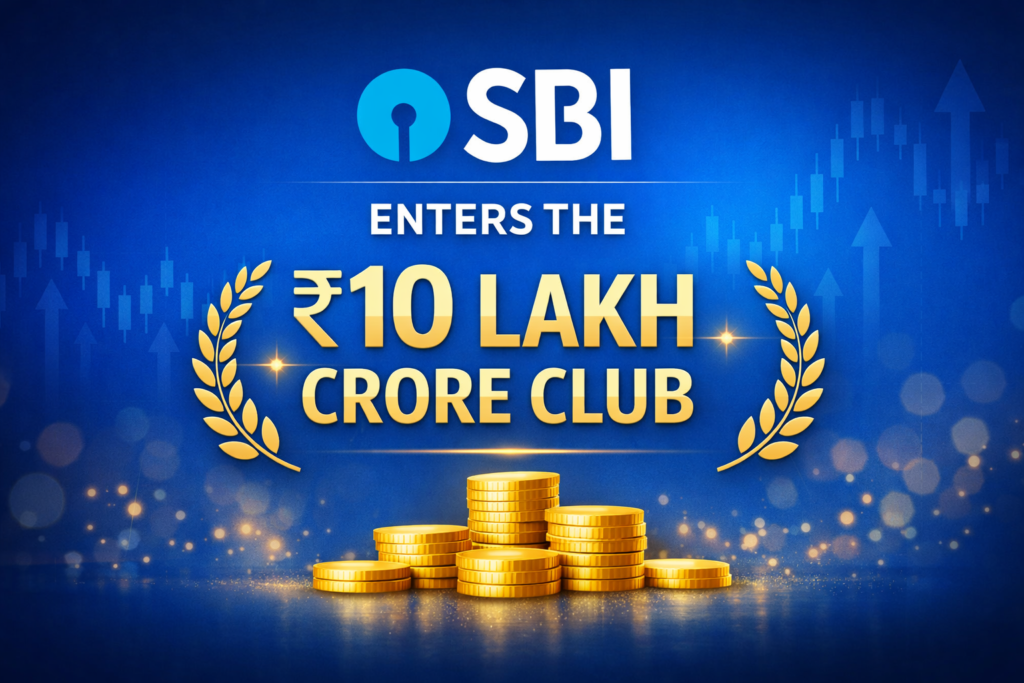State Bank of India (SBI), India’s largest public sector bank, witnessed a powerful rally in its share price, rising more than 7% to a record high, after reporting its highest-ever quarterly profit in Q3 of FY26. The strong numbers surprised many market watchers and helped SBI cross another major milestone — entering the ₹10 lakh crore market capitalization club, making it one of the most valuable listed firms in India.
